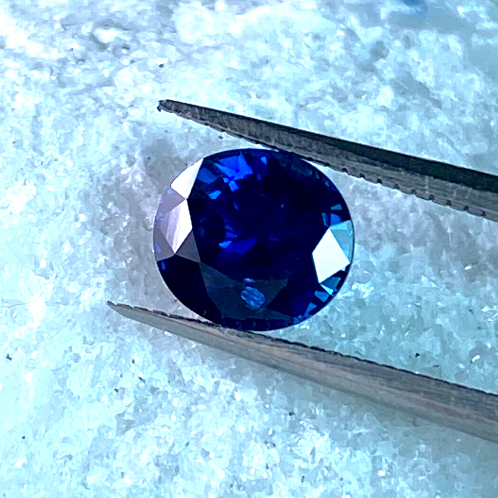 Deep blue color elegant looking gemstone with lots of life.Eye clean piece but if you use a 10x magnifier a small feather can be seen from a side ,a slight greenish appearance is there in lower side of the stone.